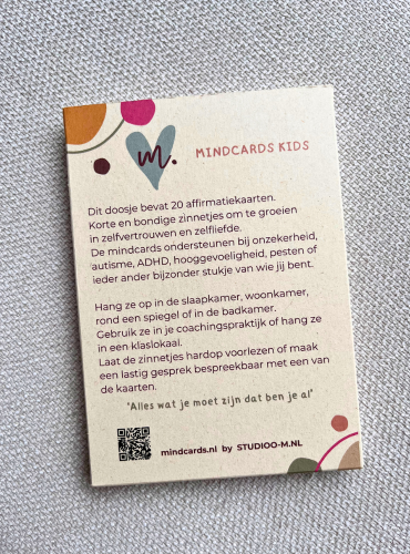De set mindcards kids bestaat uit 20 affirmatie kaarten voor kinderen. Ze ondersteunen kinderen bij de groei naar meer zelfvertrouwen, zelfliefde, acceptatie van wie je bent en mag zijn.