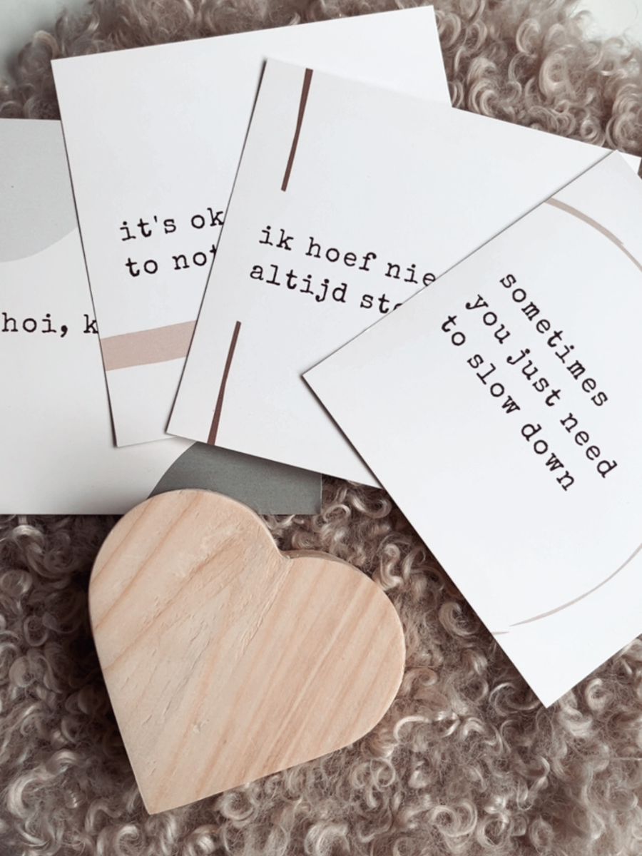 Een bijzondere affirmatiekaartenset. Wissel af en pas de kaarten aan je stemming aan.