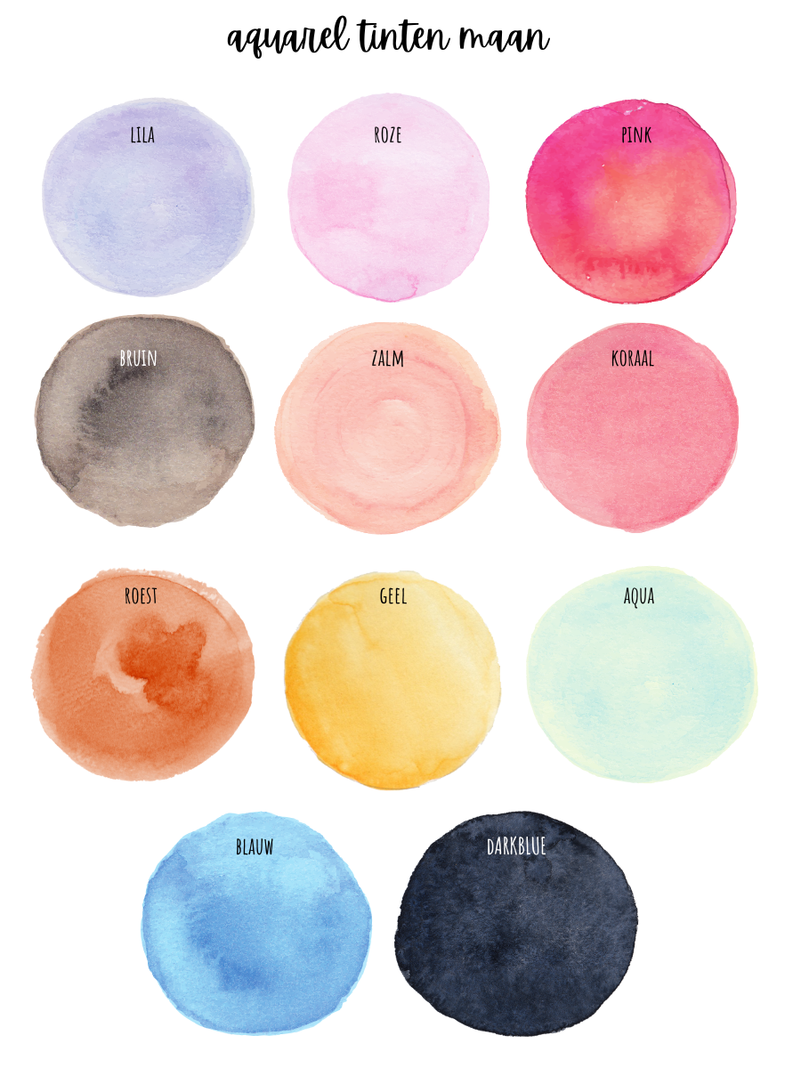 | kleur maan | lila, roze, pink, bruin, zalm, koraal, roest, goud, aqua, blauw, dark blue |